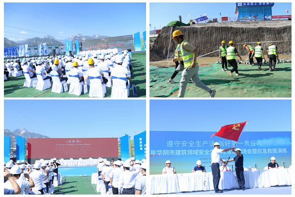 6月28日上午,华阴市2022年“安全生产月”建筑施工安全生产应急演练在集团承建的华阴昊映悦华府项目举行。