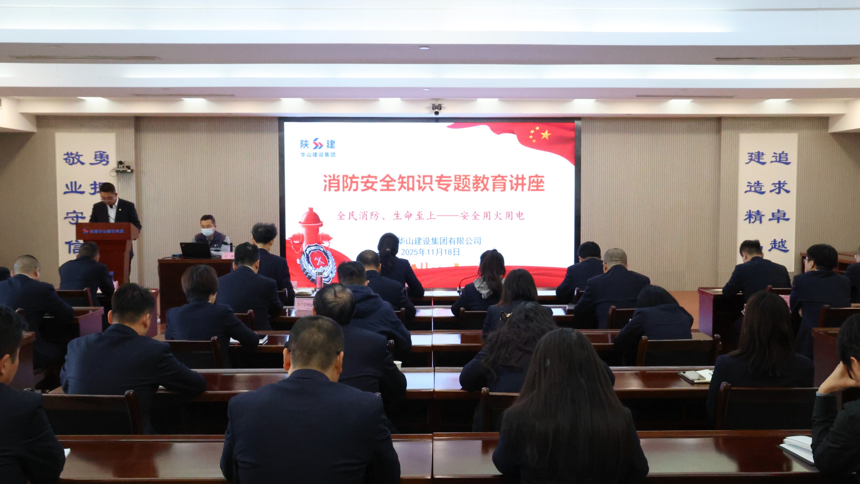 近日,陕建华山建设集团举办消防安全知识专题教育讲座暨办公场所消防疏散演练。集团副总经理吴猛出席活动并讲话。